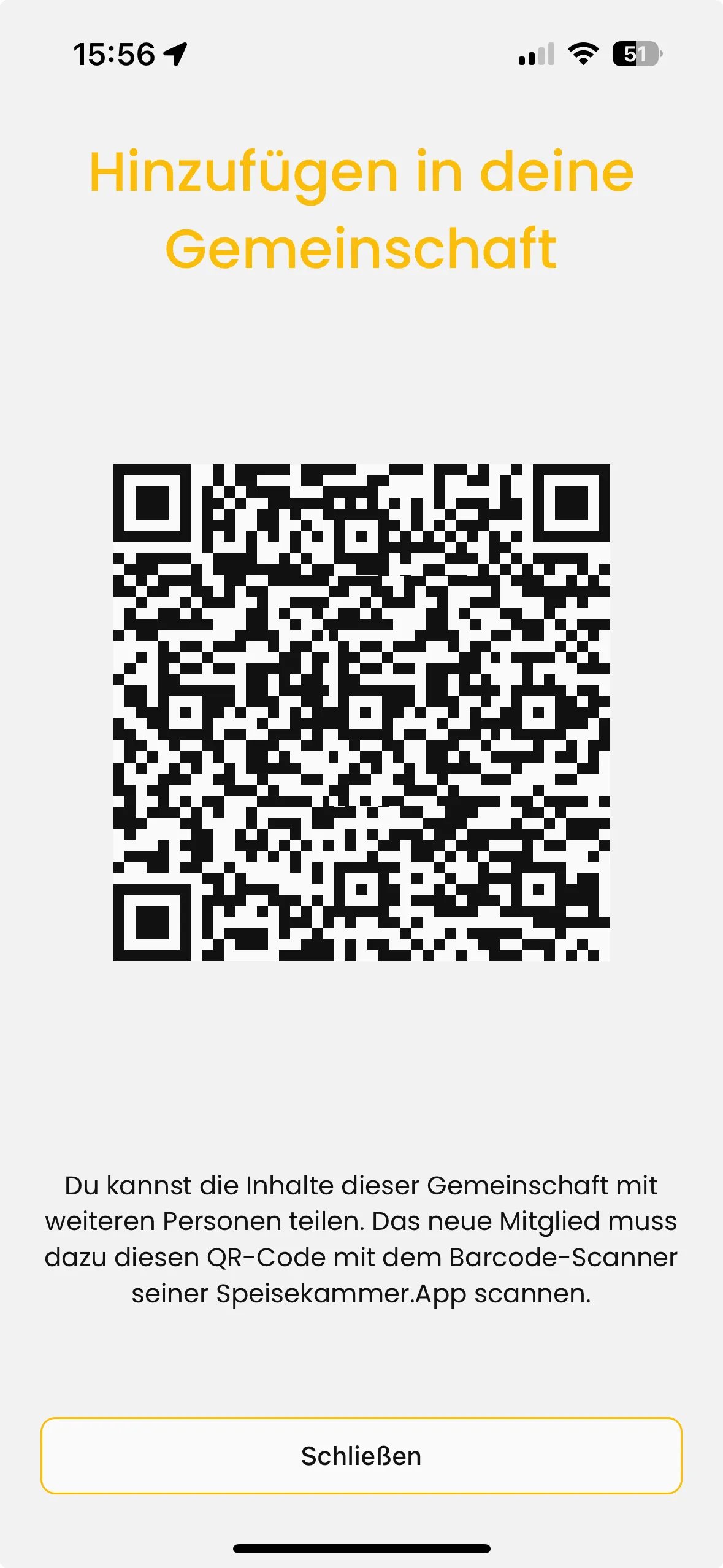 The QR code cannot be scanned using the smartphone's built-in camera app. Please use the Speisekammer.App to scan the QR code.